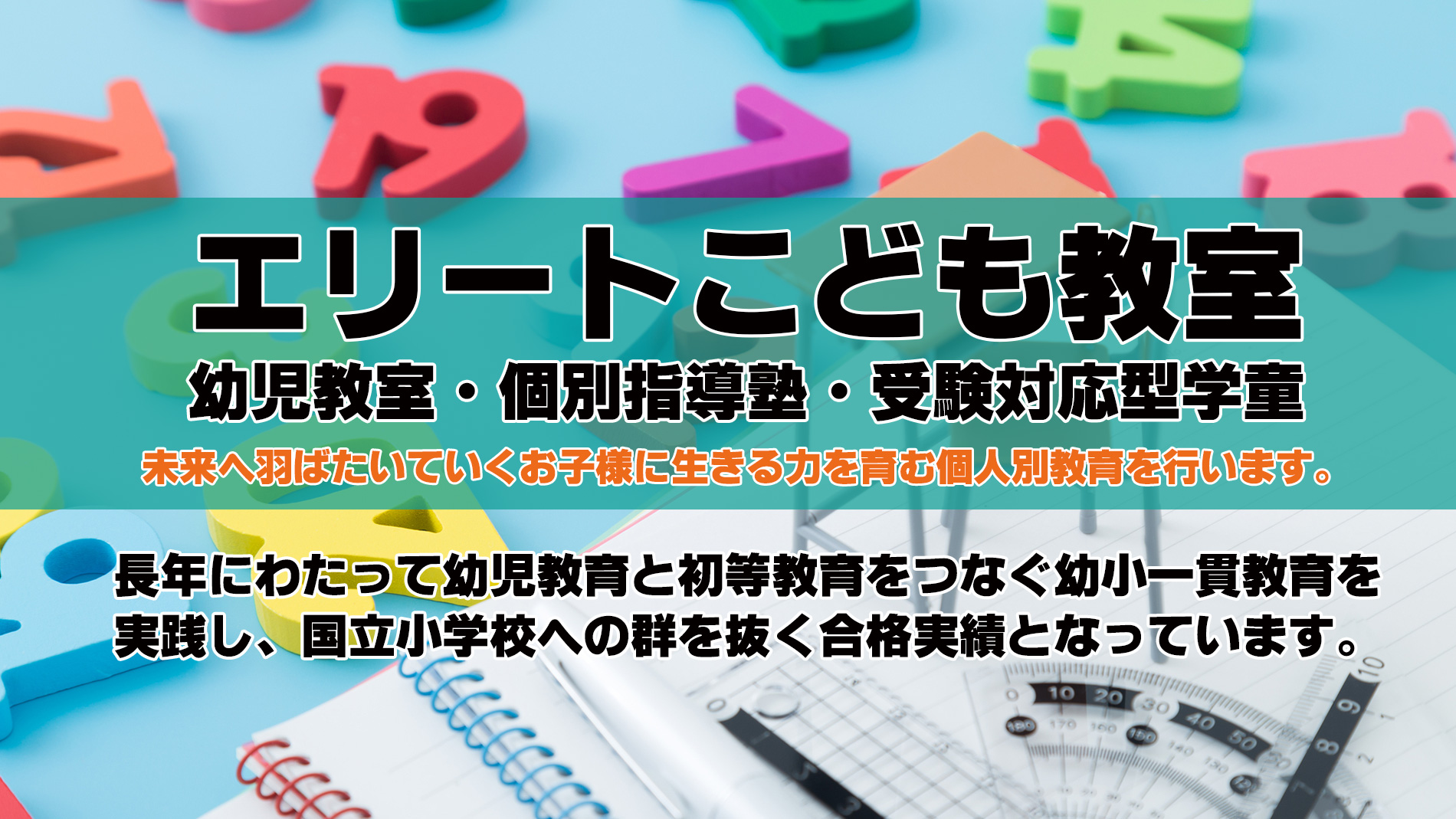 エリートこども教室は熊本大学教育学部附属小学校の受験対策を目的とした塾です。附属小学校の受験合格を目指し毎年合格者を排出しております。その他にも小学生クラスでの個別指導及び受験対応型学童も実施しております。